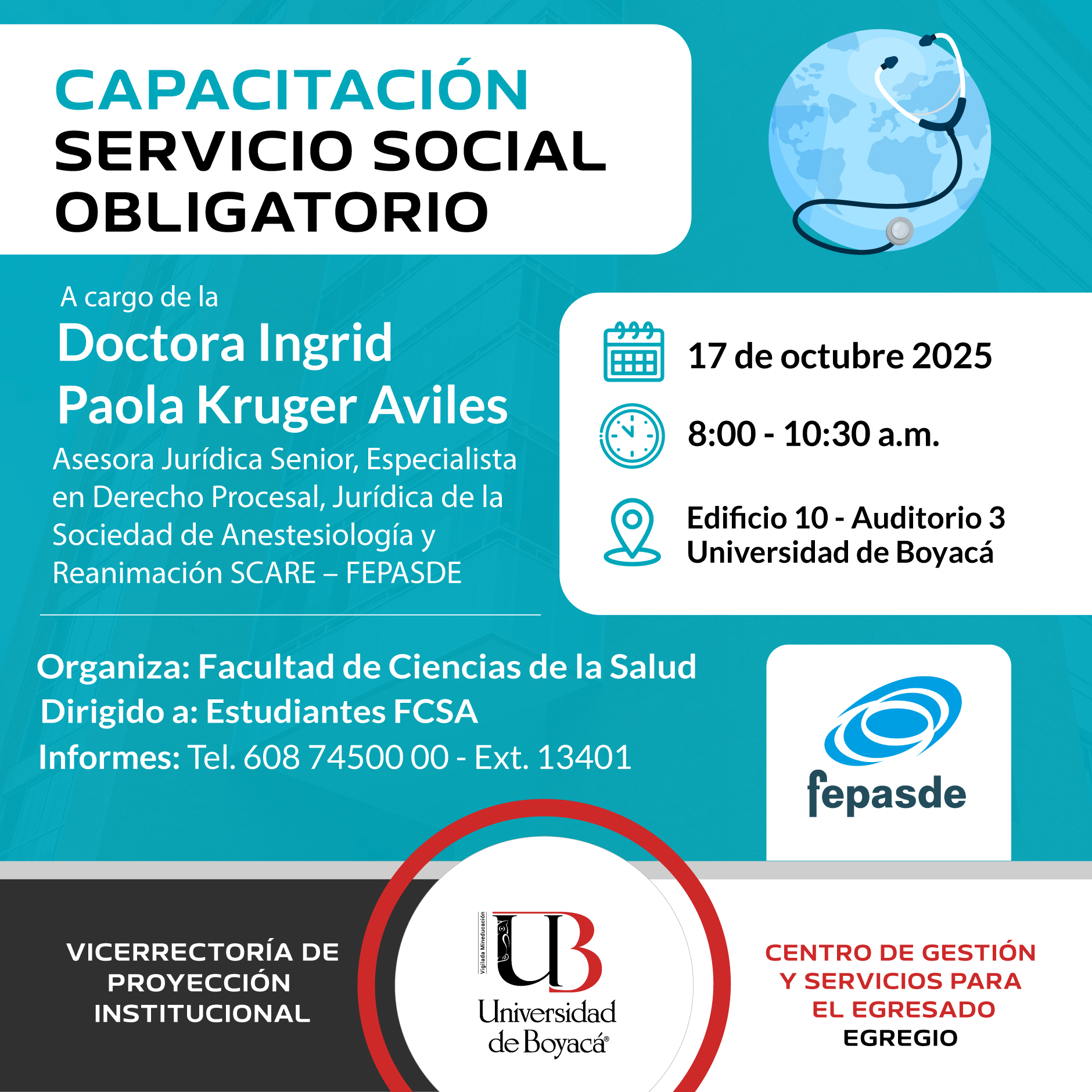 A cargo de la Dra. Ingrid Paola Kruger Aviles Asesora Jurídica Senior, Especialista en Derecho Procesal, Jurídica de la Sociedad de Anestesiología y Reanimación SCARE - FEPASDE.