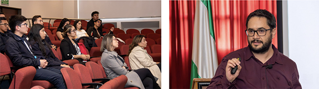 En el marco de la asignatura Profundización en Psicología Clínica, los estudiantes de séptimo semestre de la sede Sogamoso participaron en una enriquecedora jornada académica orientada por el psicólogo y psicoterapeuta Sebastián Castañeda, especialista en terapias conductuales-contextuales. Durante el encuentro, el experto abordó la Psicoterapia Analítica Funcional (FAP), enfoque que promueve el cambio conductual a través de la interacción en tiempo real entre el terapeuta y el paciente. Esta experiencia permitió a los futuros psicólogos ampliar su comprensión sobre los procesos terapéuticos contemporáneos y fortalecer su formación académica y profesional desde una perspectiva práctica y reflexiva.